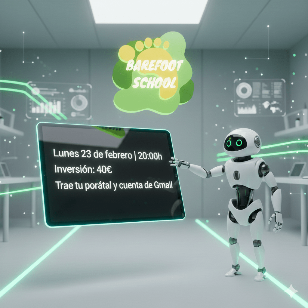 En este taller intensivo de 90 minutos, te enseñamos el flujo de trabajo exacto que utilizamos en Barefoot School para eliminar el bloqueo creativo y automatizar la creación de contenido profesional. No es una charla teórica; es una sesión de ejecución pura.
