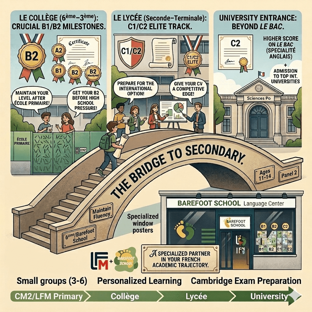 For many LFM families, the end of Primary means the end of convenient English instruction. But as the academic load increases in Collège, the need for official certification (B1/B2) becomes critical for their future.